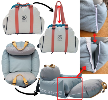 【COCOMOMB ココボムカーシート】は、多機能な3WAY構造。 車内では、万が一の危険に備えペットを守るシートに。 室内ではゆったりとしたペットハウスやベッドとして。 そしてハンドストラップ付だから、持ち運びOK!室内と車内の移動や、ペットとのお出かけが気軽にできます。